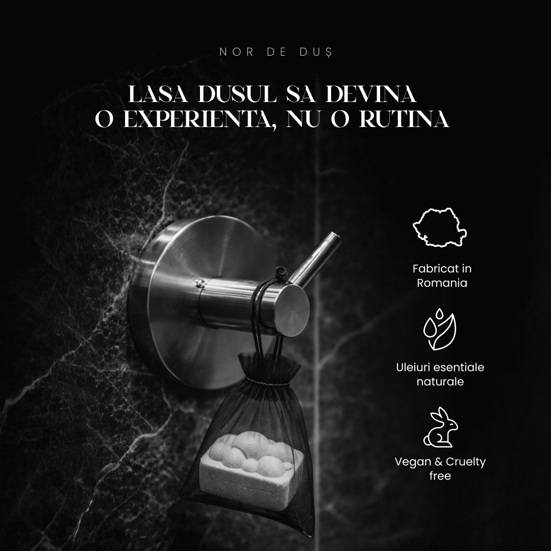 NOR este creat cu uleiuri esențiale naturale, echilibrate pentru o aromă plăcută și confortabilă în abur, nu copleșitoare ca un parfum artificial. Intensitatea depinde mult de aburul din duș și de cât de des este umezit. Pentru o experiență mai intensă, lasă dușul să se umple bine de aburi și stropește ușor NOR-ul din când în când. Aroma se simte mai mult ca o atmosferă care te înconjoară, nu ca un miros puternic direct.