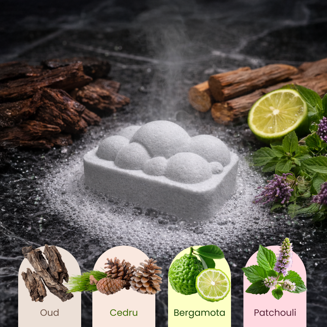 Oudul și lemnul de cedru oferă stabilitate și profunzime, bergamota aduce luminozitate, iar patchouliul completează cu echilibru. Împreună, creează o aromă clară și ancorantă care susține o stare de concentrare și transformă dușul într-un moment de focusare.