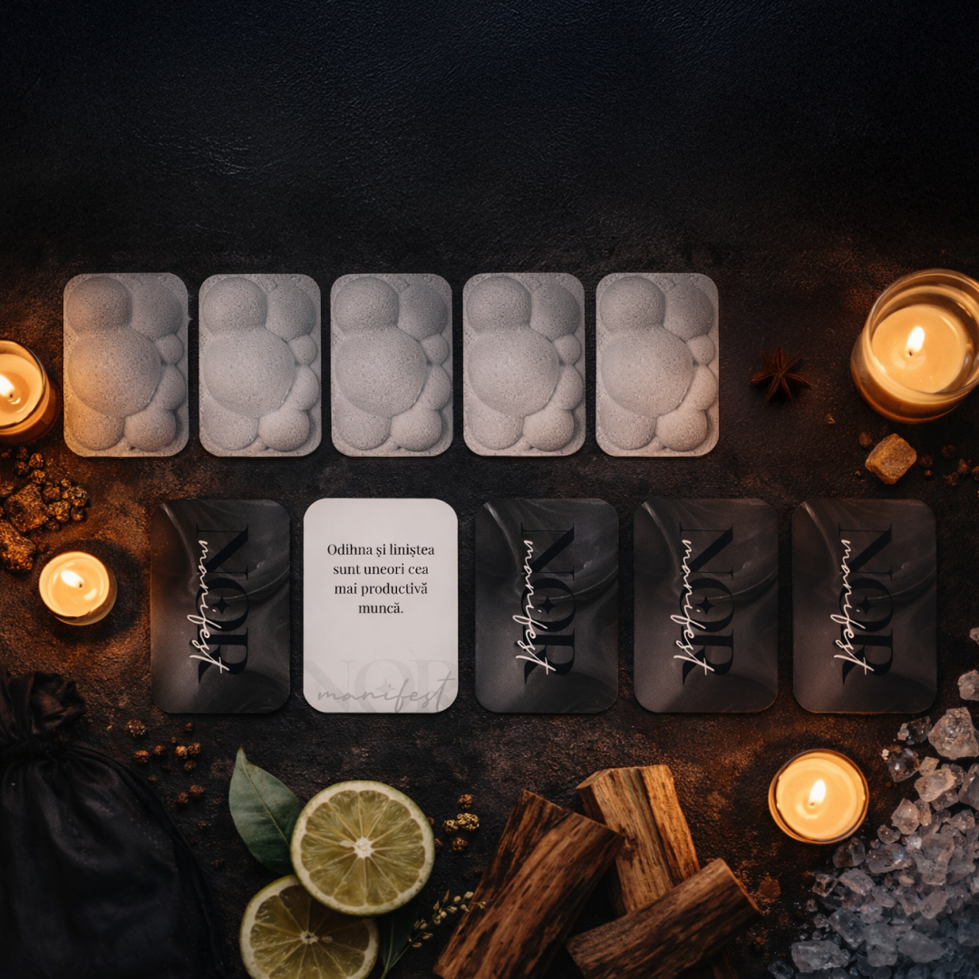 Mesajele te ajută să-ți setezi intenția, să-ți aduni energia și să intri într-o stare de focus. Împreună cu aroma și aburul dușului, creează un ritual de început de zi care susține claritatea, direcția și productivitatea.